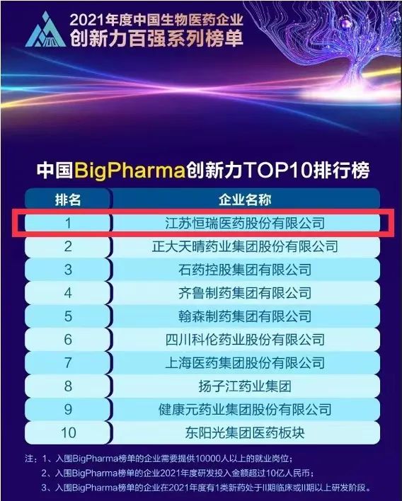 9月16日,由米内网主办的“2021年度中国生物医药企业创新力百强系列榜单”发布会在线上举办。尊龙凯时国际医药继去年登顶“中国BigPharma企业创新力TOP10排行榜”后,今年再次名列该榜单首位。